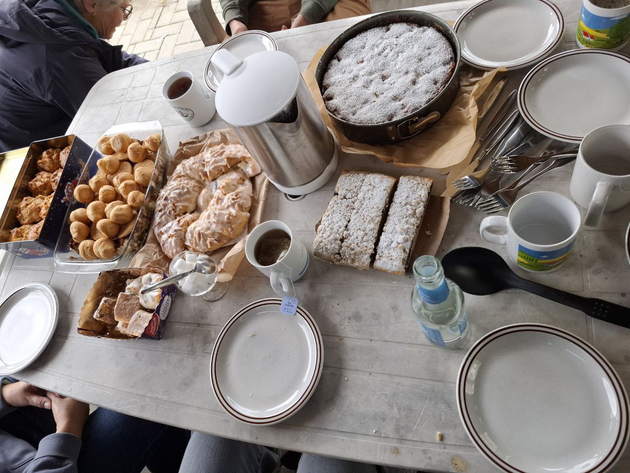 Am Bootshaus, schnell umgezogen, Kaffee gekocht und richtig leckeren Kuchen, Kekse, Tiramisu und, und... verspeist. Heike kam