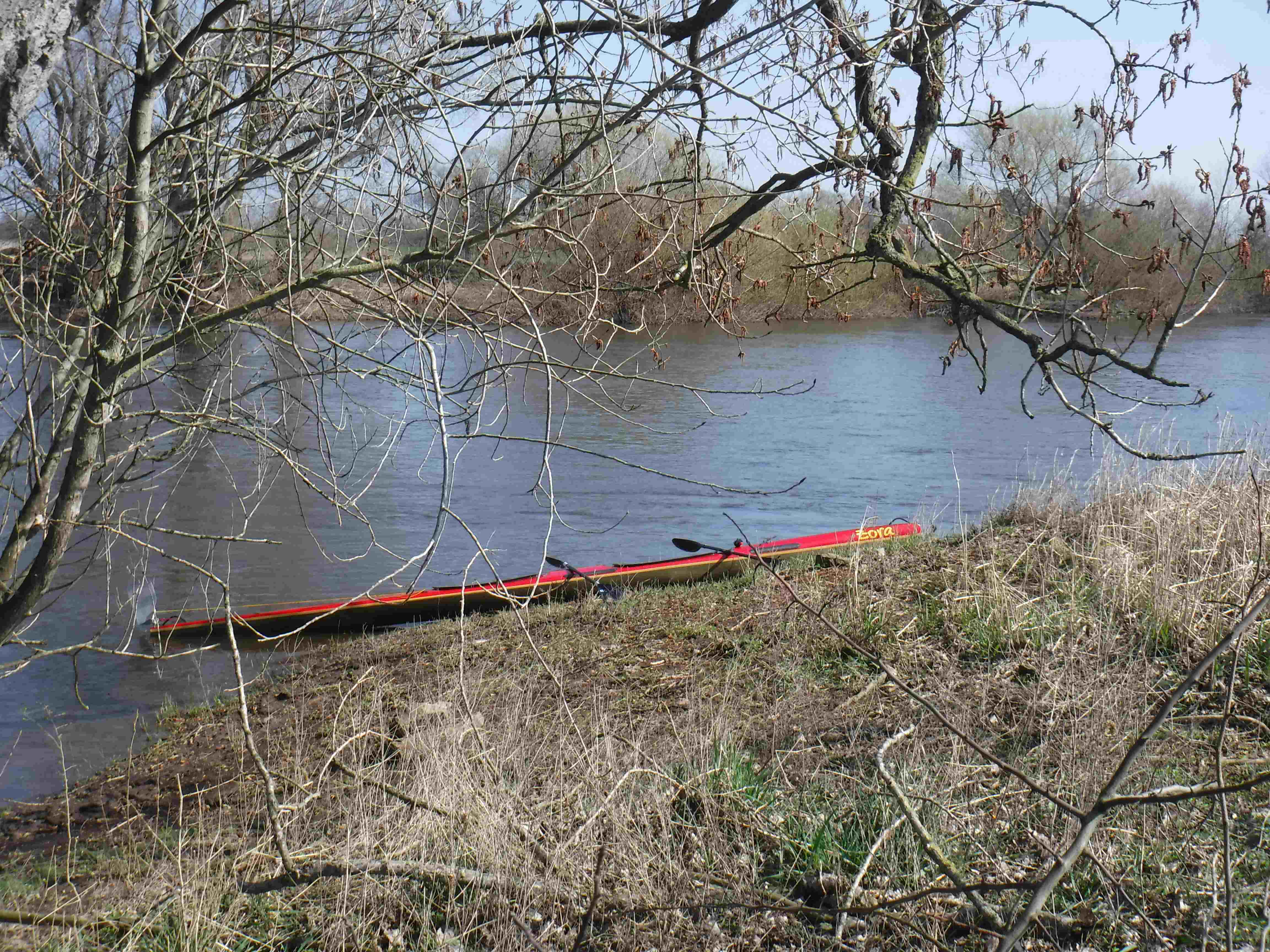 Am Sonntag zu früher Stunde trafen wir uns bei strahlendem Sonnenschein am KSH, um die Boote zu verladen und uns zu neunt auf den Weg zur Luhe zu machen. Nachdem sich alle mit einer Strecke von 21 Kilometern einverstanden zeigten, ließen wir ein Auto am Ziel in Bahlburg und fuhren weiter bis Oldendorf, um dort einzubooten. Bald schon saßen alle in den Kajaks und los ging es mit munterer Strömung. Nach einigen hundert Metern erwartete uns sogleich ein Hindernis in Form eines Baumstammes welcher teilweise unter der Wasseroberfläche lag und mit etwa dreißig Zentimetern Durchmesser auch nicht zu bewegen war. So kletterten diejenigen, die mit laminierten Kajaks unterwegs waren um und über die Barriere, während es den PE-Boot-Fahrenden mit viel Schwung überwiegend schon beim ersten Versuch gelang über den Stamm zu „fliegen“.